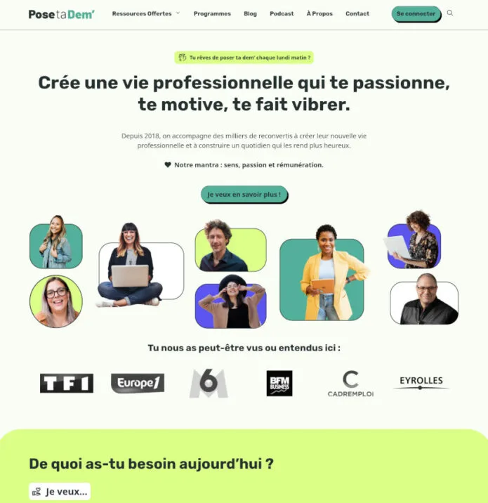 Pose ta dem est un organisme qui aide les salariés qui ne trouvent plus de sens dans leur travail, à se reconvertir, pour se réinventer professionnellement et s’épanouir.